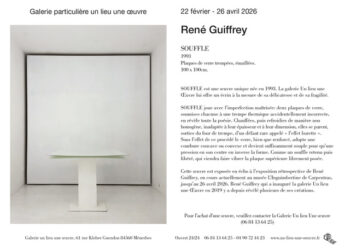 25 février 2026 - 26 avril 2026 @ All Day - René Guiffrey 22 février - 26 avril 2026 SOUFFLE 1993 Plaques... Lire la suite → Galerie Un Lieu Une Oeuvre
