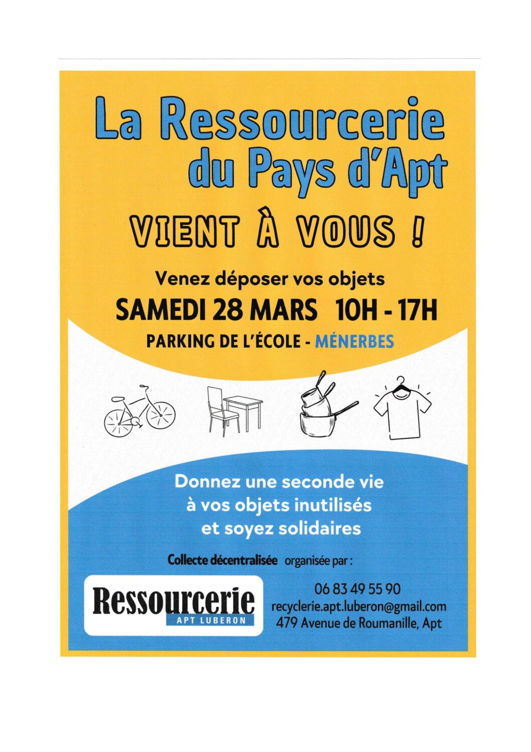 28 mars 2026 @ All Day - ressourcerie explication collecte... Lire la suite → Collecte ressourcerie d’Apt